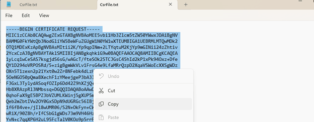 3. پنجره سوم محتوای درخواست گواهی (CSR)
