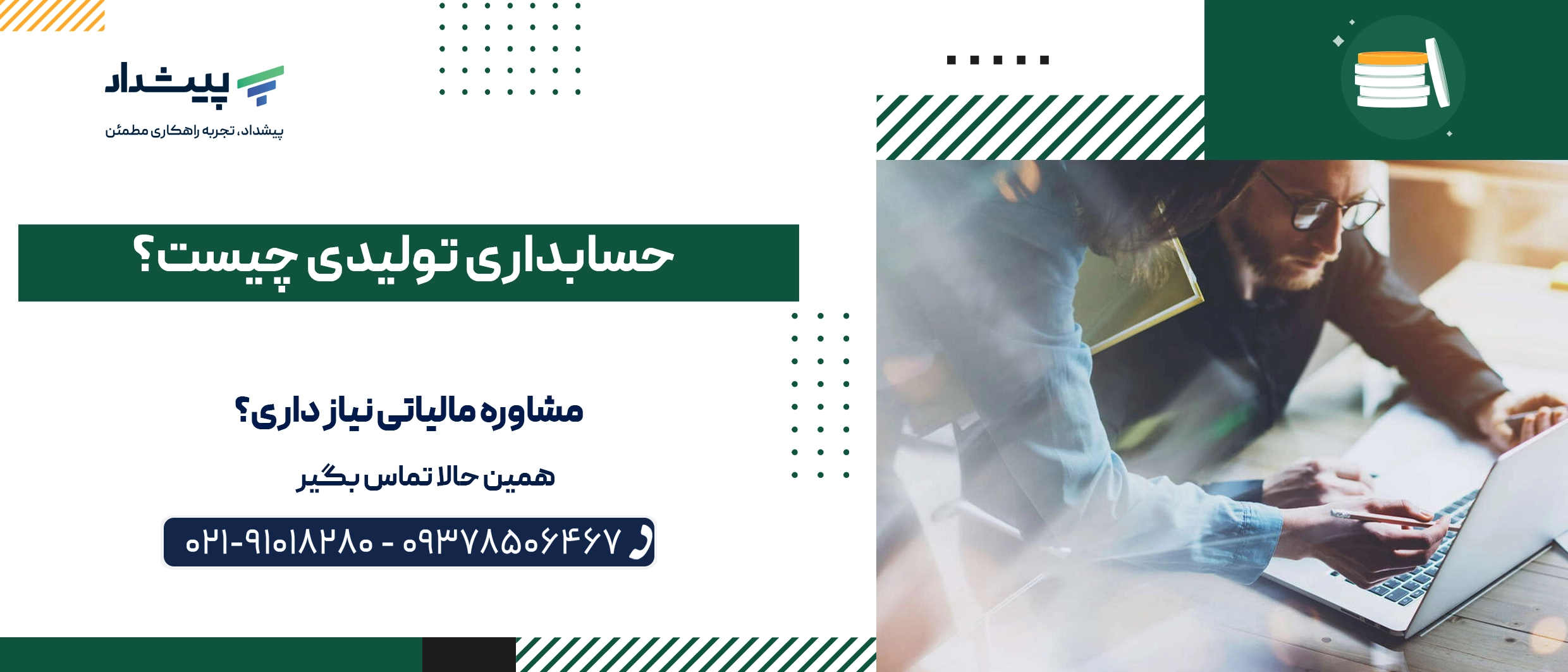برای مدیریت دقیق و حرفه ای حسابداری تولیدی، گروه خدمات مالیاتی پیشداد بهترین انتخاب شماست. این مجموعه با بهره گیری از نرم افزارهای تخصصی، تیمی مجرب و آشنا به فرآیندهای تولید، خدماتی جامع در زمینه محاسبه بهای تمام شده، کنترل هزینه های تولید، تهیه گزارش های مالی و ارزش گذاری موجودی شرکت تولیدی ارائه می دهد.