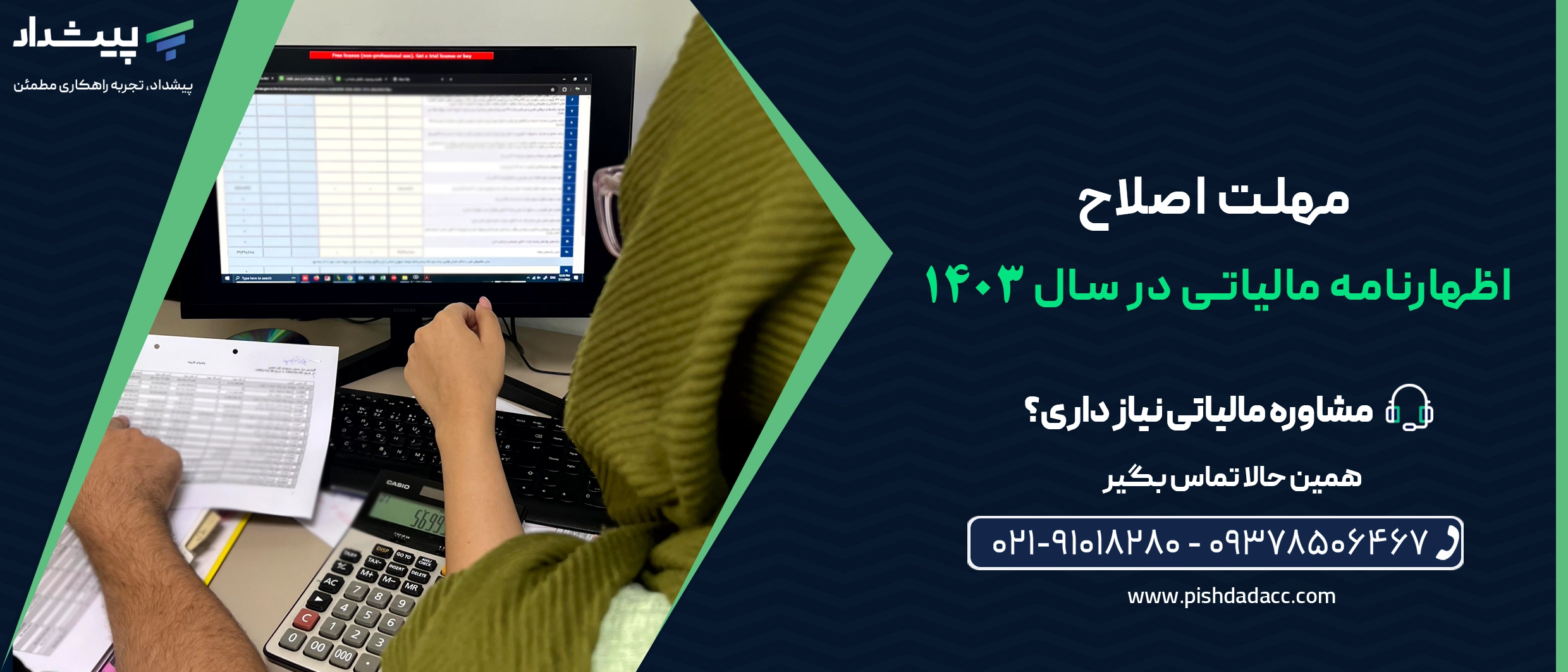 مدیریت امور مالیاتی کسب وکار شما نیاز به دانش و تجربه دارد. اگر به دنبال کاهش مالیات های پرداختی، بهره مندی از معافیت های قانونی یا اصلاح گزارش های مالیاتی هستید، همین حالا می توانید با کارشناسان مالیاتی شرکت پیشداد تماس گرفته و مشاوره تخصصی دریافت کنید.