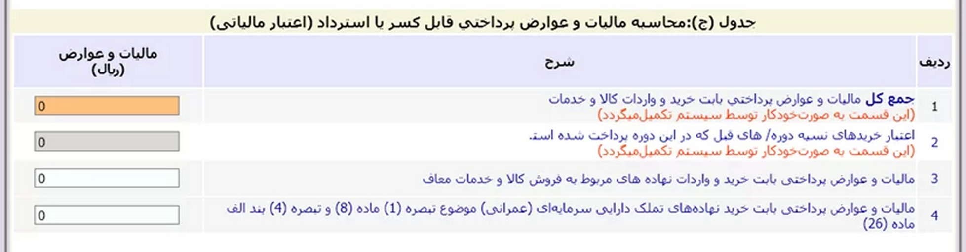 9. تکمیل تنظیمات اعتبارات مالیاتی: جدول ج شامل تنظیمات مرتبط با اعتبارات مالیاتی خرید است.