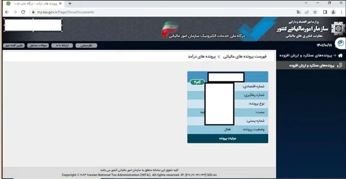 - مشاهده خلاصه وضعیت مالیاتی: پس از ورود، صفحه ای نمایش داده می شود که خلاصه وضعیت مالیاتی شما را نشان می دهد. در این مرحله باید پرونده مالیاتی خود را انتخاب کنید.