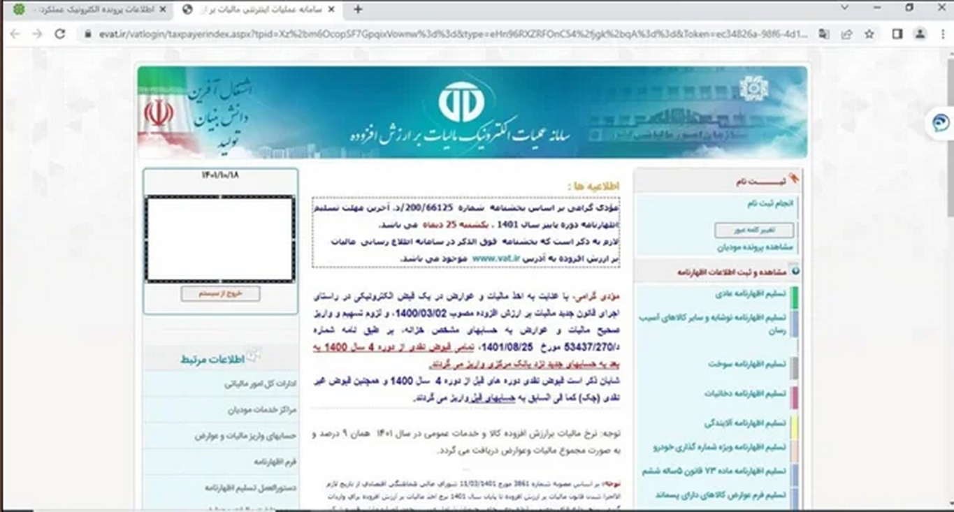 - ثبت اظهارنامه فصلی: در پایان هر سه ماه، اظهارنامه مالیات بر ارزش افزوده باید از طریق سامانه یکپارچه مالیات بر ارزش افزوده در آدرس my.tax.gov.ir ثبت شود.