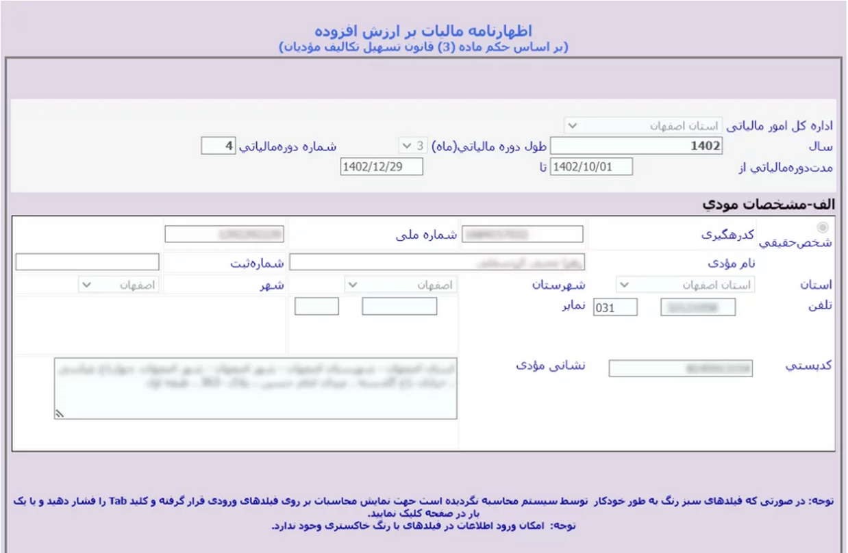- تکمیل اطلاعات دوره مالیاتی: در این مرحله باید اطلاعات مربوط به دوره مالیاتی موردنظر را تکمیل کنید.